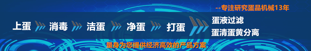 敲蛋機敲蛋主要是利用一種雙層的打蛋刀插入到雞蛋中,然后打蛋刀向兩側(cè)分離,帶動蛋殼裂開,使蛋液從中流出落入滑道中,整個過程是:雞蛋隨著帶有蛋槽的輸送帶逐步向敲蛋機中部運動,當(dāng)?shù)竭_(dá)敲蛋位置時,打蛋刀從蛋槽下方伸出向上頂雞蛋,此處雞蛋的上方又有壓蛋器,阻止雞蛋活動,打蛋刀隨即進(jìn)入雞蛋中,并立即向兩側(cè)分開,短暫延時后,蛋液基本流出,打蛋刀合并收回,蛋殼隨蛋槽向敲蛋機末端移動。